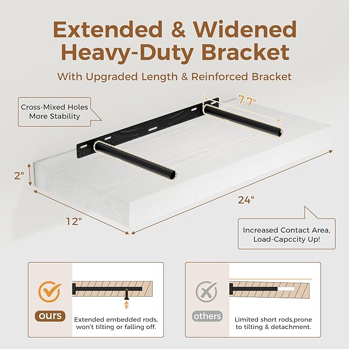 - Special Feature : 12 Inch Deep, 2 Inch Thick, Invisible Heavy-Duty Bracket, Large Storage & Display Space, Wall Mounted Shelves 12 Inch Deep, 2 Inch Thick, Invisible Heavy-Duty Bracket, Large Storage & Display Space, Wall Mounted Shelves