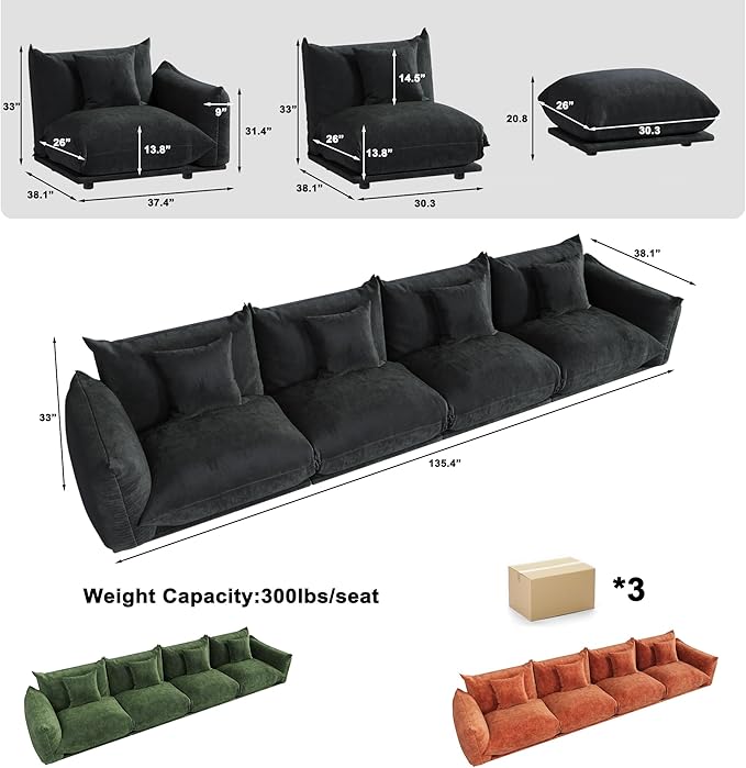 - 【Modular Design & Creative Color Blocking】This modular sofa includes armless seats, corner pieces, and ottomans that can be arranged to fit your space. Seats, backrests, armrests, and cushions can all be freely combined. With three color options, you can create bold color blocking and a personalized look. Depending on your needs, it can be configured into a loveseat, L-shaped sofa, U-shaped sofa, or even a sleeper sectional sofa—perfect for any space or lifestyle.