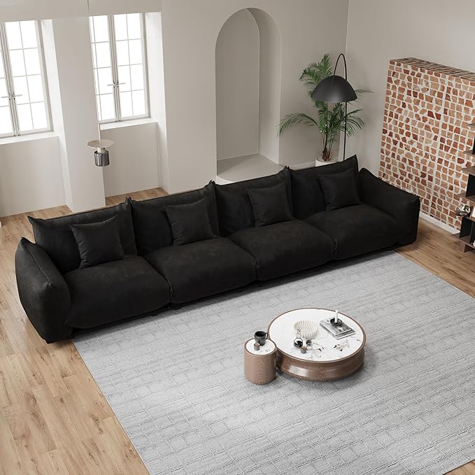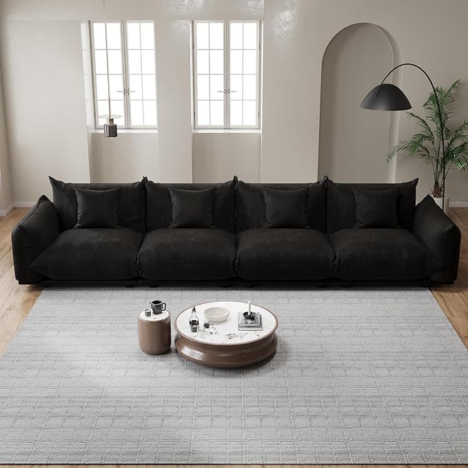 smilesun Modern Minimalist Chenille Modular Sectional Sofa, Oversized Couch and Loveseat Set with Thick Cushions, Upholstered Sofa for Living Room, Bedroom, Office, Apartment(Black,136" 4-Seater)