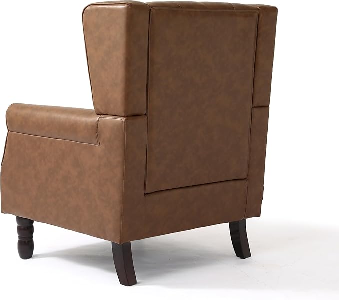 UIXE Faux Leather Accent Chair, High Back Upholstered Armchair for Living Room, Wingback Arm Chair Comfy Single Sofa Bedroom Reading Seat with Solid Wood Legs - Brown