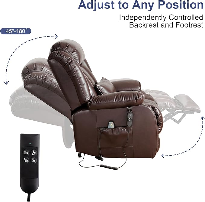 - [Adjustable to Any Position] The power lift recliner can be adjusted to any angle you need (45°-180°) to meet your different needs, such as reading, watching TV, sleeping or getting up and leaving. Our lift chair is equipped with a lift remote control, avoiding the problem of not being able to reach the lift buttons on the armrests when reclining.