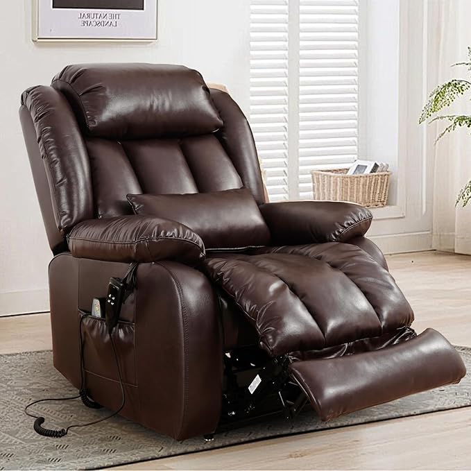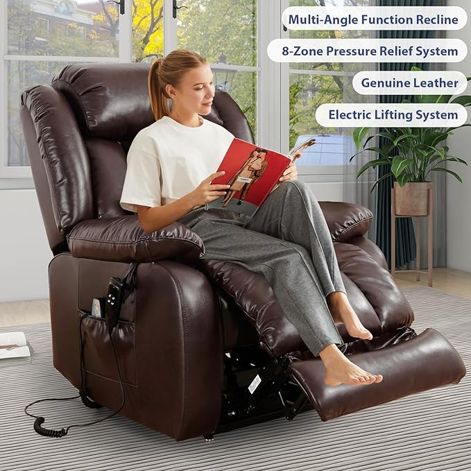 - [Upgraded Size] Our power lift recliner has a longer footrest and thicker backrest with double lumbar cushion design, which can provide you with a more comfortable using experience. In addition, the footrest has been extended by 3", which can more fully support your feet when you recline in the chair to read or rest, allowing you to get a more ultimate experience.