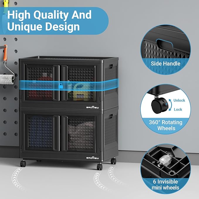 - 【Space-Saving Stackable & Collapsible】Maximize your storage footprint. Stack bins vertically as modular cabinets (bedside, clothing, books, kitchen) and collapse them nearly flat when not in use. Perfect for closets, laundry rooms, garages, playrooms, classrooms, dorms, and car trunks – featuring a roomy, odorless design.
