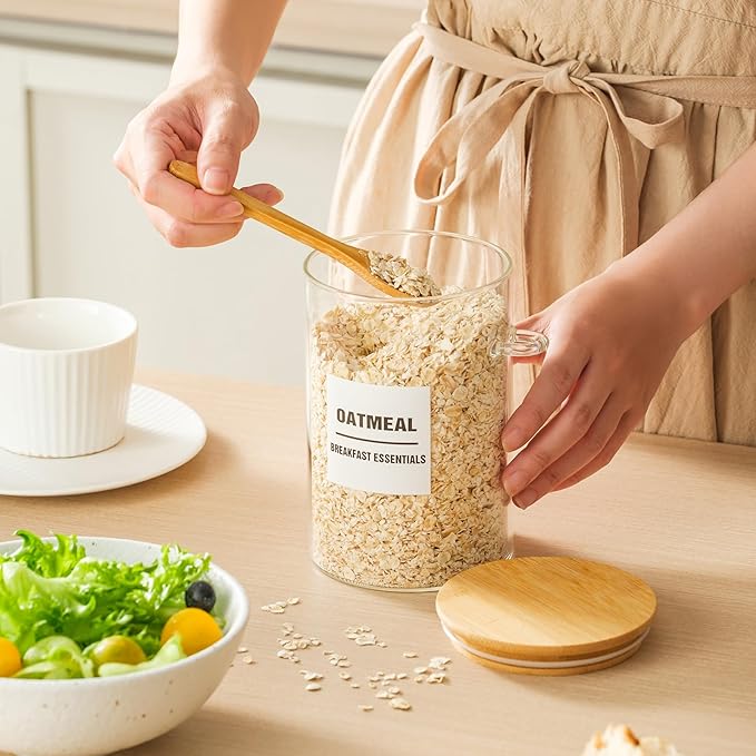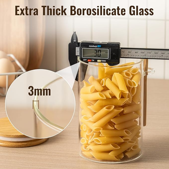 - Stackable Storage Solution:Engineered with a space-saving design,these airtight glass jars with bamboo lids stack securely to maximize cabinet or countertop space.Ideal for small kitchens or pantries seeking clutter-free organization