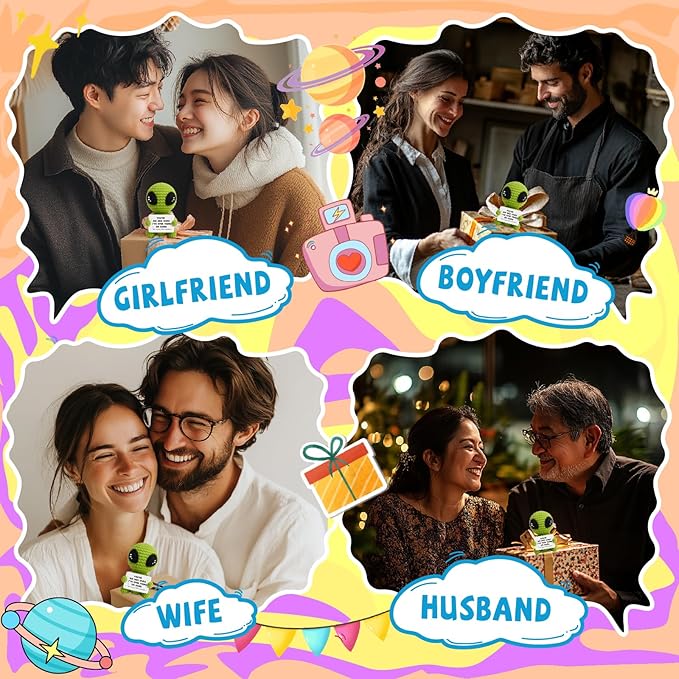 - Charming & Romantic Desk Decor: Beyond being a gift, this crochet alien decor is a delightful addition to any space. Its compact size and romantic message make it a perfect piece of office desk decor or shelf decor, serving as a constant reminder of your love.