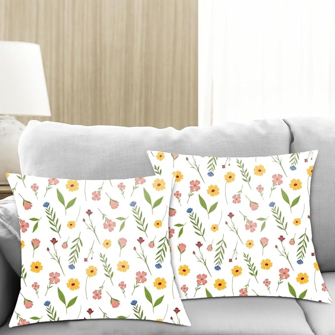 2 Pack Retro Cute Wildflowers Decor Throw Pillow Covers, 18x18 Pillow Cover, Decorative Couch Pillow Covers Flower Decor Pillowcase for Sofa Cushion Sofa Home Chair Office Car Seat Living Room