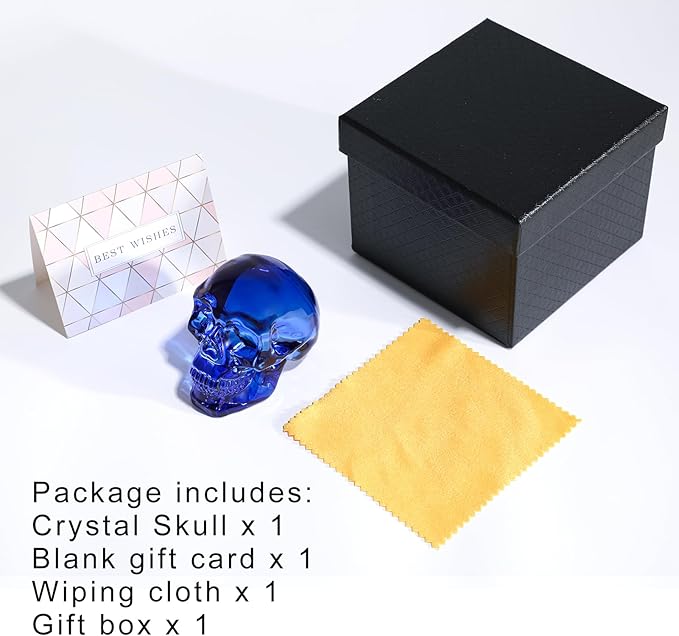 - Gift Box Packaging: All our crystal skull ornaments come beautifully packaged in an exquisite gift box, which includes a cleaning cloth and a wish card (a blank card for you to write your blessings). They are ready at any time to bring her surprises and love.