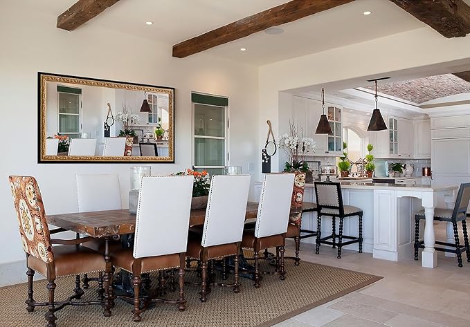59.5"x30" Living Room Mirrors for Wall Decor, Black Antique Mirror with Gold Foil Carvings Wooden Frame for Bathroom, Entryway and Bedroom
