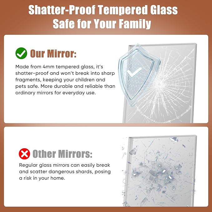 - HD Glass & Safe Design – High-definition glass delivers a clear, distortion-free reflection, while the explosion-proof backing film adds extra safety for daily use.