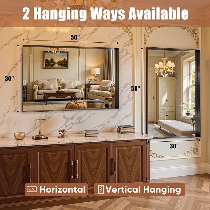 - Bathroom Mirrors for over Sink – The oversized design offers a wide viewing area, perfect for bathrooms, bedrooms, or living rooms, making your space look brighter and more open.