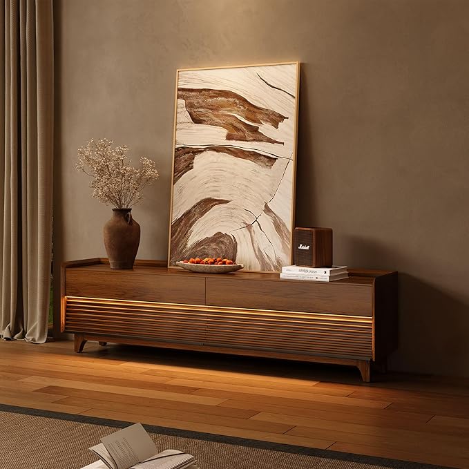 - Integrated LED Lighting: Enjoy the convenience of built-in LED lighting. The warm, 6-level adjustable lighting with remote control enhances the visual appeal of your TV console and makes your displayed items stand out