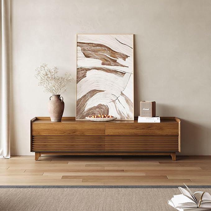 - Premium Natural Wood Grain: Our modern wood tv stand made of white wax wood grain veneer, smooth finishes and sturdy construction, not easy to deforme or cracke after a lont-term use