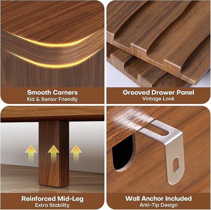 - 【Mid Century Modern Console Table】The console table showcases a charm endemic to mid-century and modern decor. The drawer surfaces adopt retro wavy vertical bar design. The minimalist design without handles, which opens and closes from the bottom, highlights the beauty of geometric lines.
