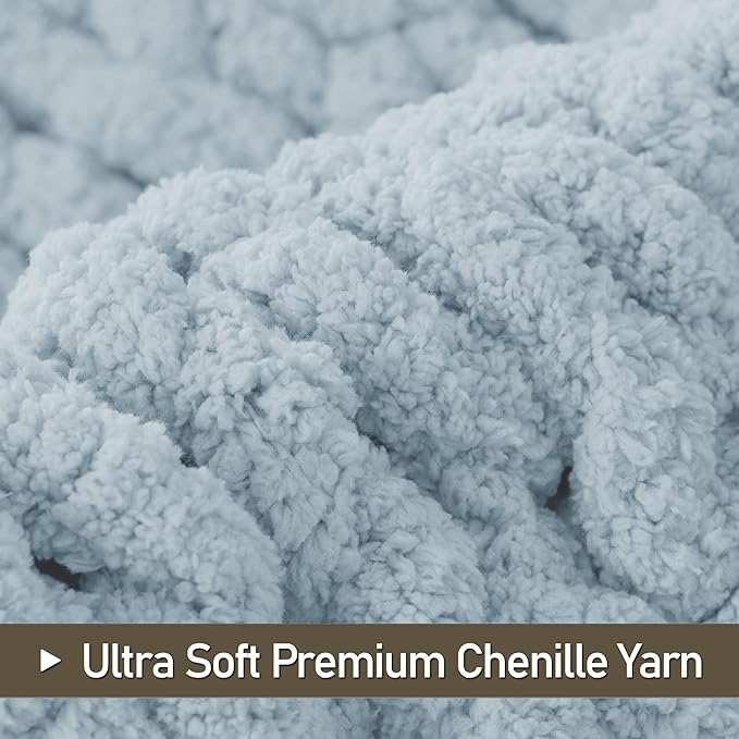 Chunky Knit Throw Blanket 50"X 60", 100% Handmade with Soft Chenille Yarn, 4.4lbs Thick Cable Knitted Blankets, Large Rope Knot Crochet Throws for Couch Sofa Bed Home Decor, Baby Blue