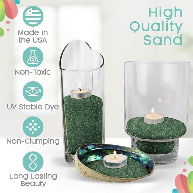 Hunter Green (Holly) Unity Sand, 1 LB (16 oz), Dark Green Colored Sand for Weddings, Vase Filler, Home Decor, Crafts, Terrariums, and More