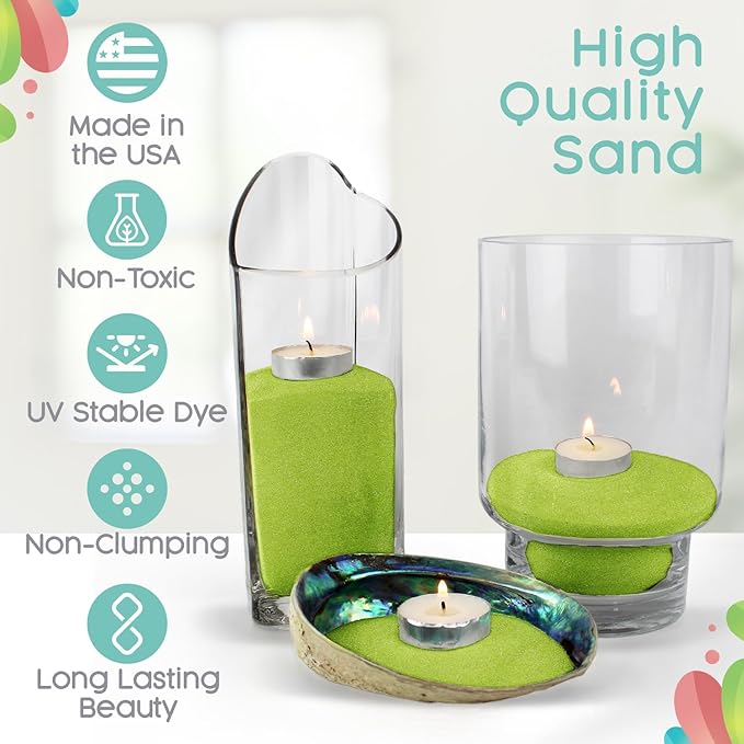 Kiwi Green Unity Sand, 1 LB (16 oz), Colored Sand for Weddings, Vase Filler, Home Décor, Crafts, and More