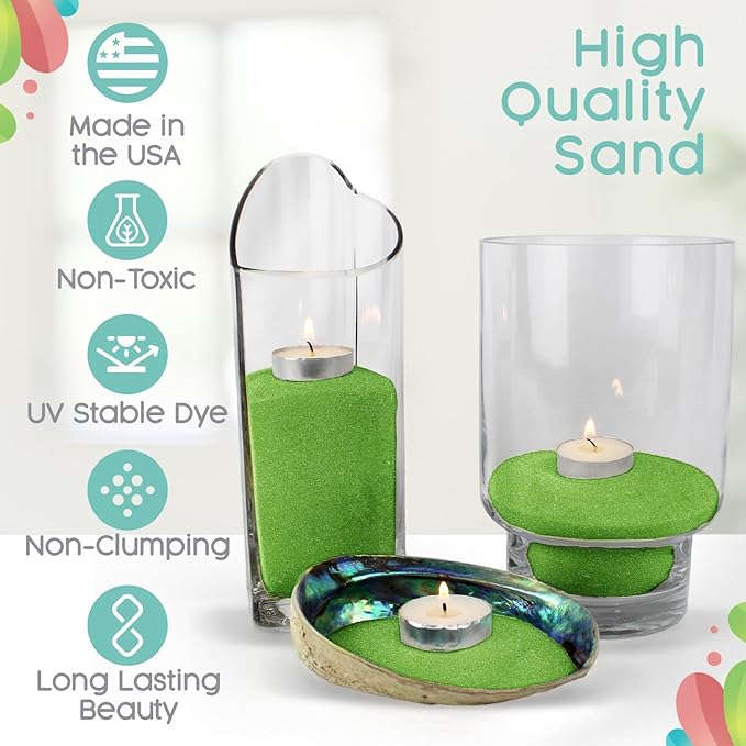 Lime Green Unity Sand, 1 LB (16 oz), Colored Sand for Weddings, Vase Filler, Home Décor, Craft Sand, Aquarium Sand, and More