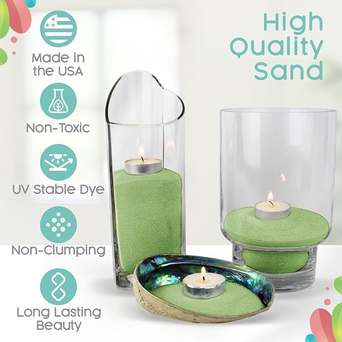Meadow Green Unity Sand, 1 LB (16 oz), Colored for Weddings, Vase Filler, Home Décor, Craft, Aquarium, and More