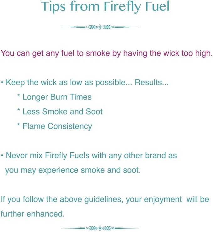 - CLEAN-BURNING & LOW SMOKE: Firefly Tiki Torch Fuel produces a virtually odorless flame with minimal smoke, so you can enjoy the glow without battling fumes during your outdoor evenings.