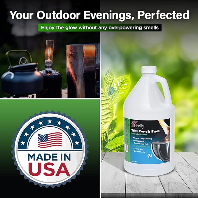 Firefly Tiki Torch Fuel – Clean-Burning Outdoor Lamp Oil for Tiki Torches and Lanterns. Low Smoke, Eucalyptus Formula, Long-Lasting – Outdoor Patio & Garden Use - 1 Gallon
