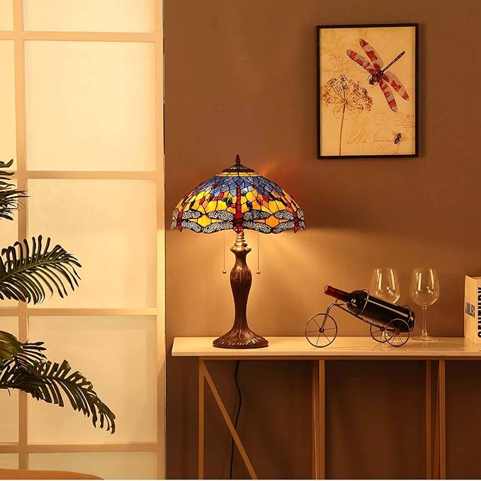 - COMPLEX DESIGN LAMPSHADE: There are 6 dragonflies on the lampshade. The more the number of glass pieces, the more beautiful the pattern, the stronger the lampshade and the rounder the shape.
