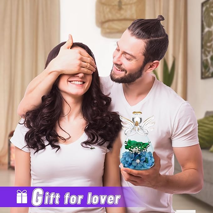 ANLUNOB Preserved Rose Birthday Gifts for Women Mom Grandma Wife, Glass Angel Figurines Gifts with Pretty Green Flowers for Anniversary Wedding