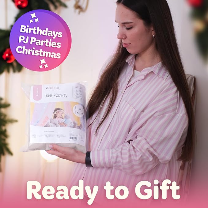 - PERFECT GIFT: Bollepo products are uniquely designed with our family-oriented customers in mind. For this reason, we use hand-drawn, one-of-a-kind illustrations from a professional artist for our packaging—making this white, princess canopy a perfectly packaged gift for birthdays, Christmas, or even a gift to help your child overcome their fear of the dark. Great for children ages 3 and up, desired by all the girls who want to feel like a princess!