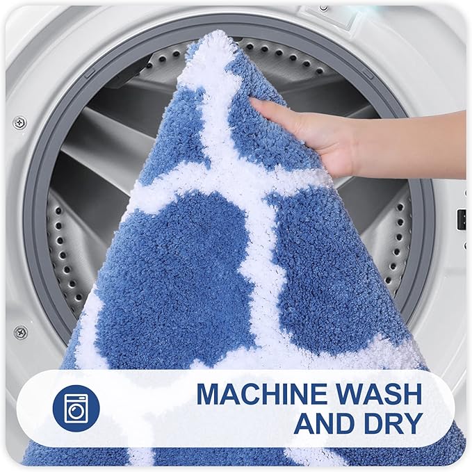 - [Comfortable and Luxurious] This bath mat boasts a contemporary Moroccan geometric design with a 0.6-inch high pile, incorporating a unique ultra-fine fiber-locking technique for unparalleled fluffiness and softness. Immerse your feet in the cozy and comfortable feel of the bathroom mat, adding a touch of sophistication to your space