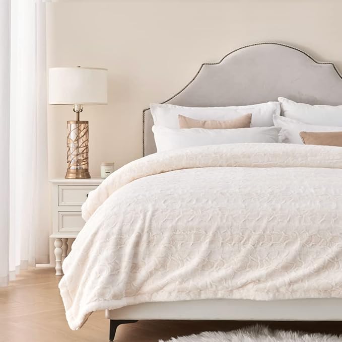 Krifey Oversized Faux Fur Blanket, Super Soft Cozy Blanket, Luxury Fluffy Throw Blanket Fuzzy Bed Throw, Plush for Women, Cream 60" x 80"