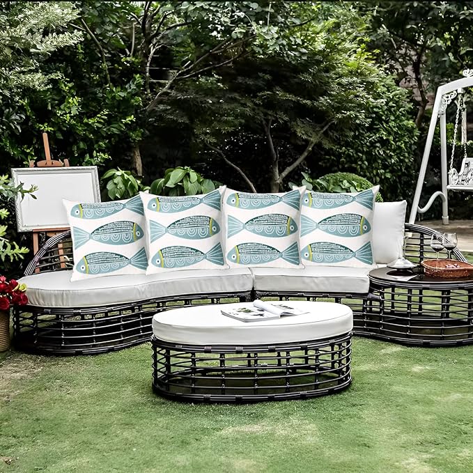 1 PCS Embroidered Throw Pillow Cover Cotton Decorative Square Cushion Cases for Home Sofa Bed and Chair 18 x 18 Inch (Blue Fish)