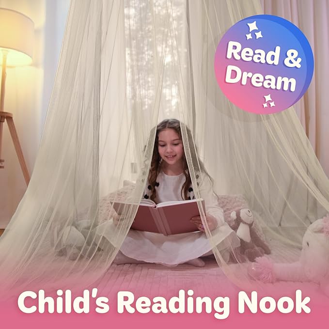 - MULTIFUNCIONAL: Call it a canopy for girls room, bed tent or a crib netting - our kids canopy can be used for so many things! A lovely reading nook, magical tent in a playroom or a photo backdrop for a party as a princess decor! You can easily take it down, fold and take it while the family is traveling! Who doesn't want fuzzy yellow on their trip?