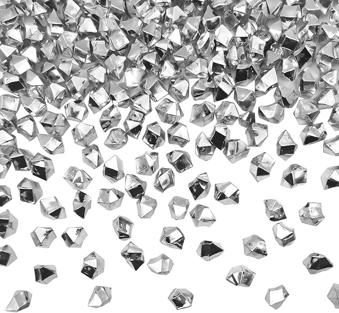 Acrylic Vase Fillers 16 * 22mm 250 PCS, Silver Fake Ice Cubes, Acrylic Ice Cubes Clear Rocks Fake Diamonds Clear Acrylic Vase Filler