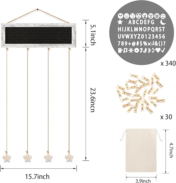 - DIY CREATIVE PICTURE FRAMES COLLAGE SET- This hanging photo display comes with a felt letter board, pre-cut 340 letters in a cloth bag, 30 clips, and 4 hemp ropes with star-shaped rattan. Easily replace your favorite letters and symbols on the board, adjust the length of the hemp rope, and the clips for changing the photo, a simple and creative way of DIY decoration.
