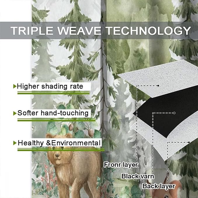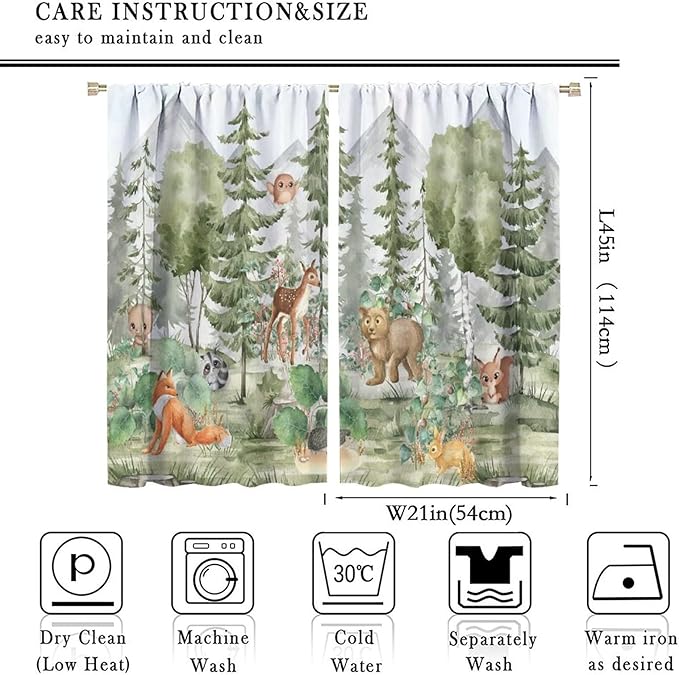 Kids Forest Animal Curtains,Fox Elk Bird Animal Watercolor Woodland Print Curtains Kids Nursery Bedroom Living Room Home Decoration 42x45 Inch