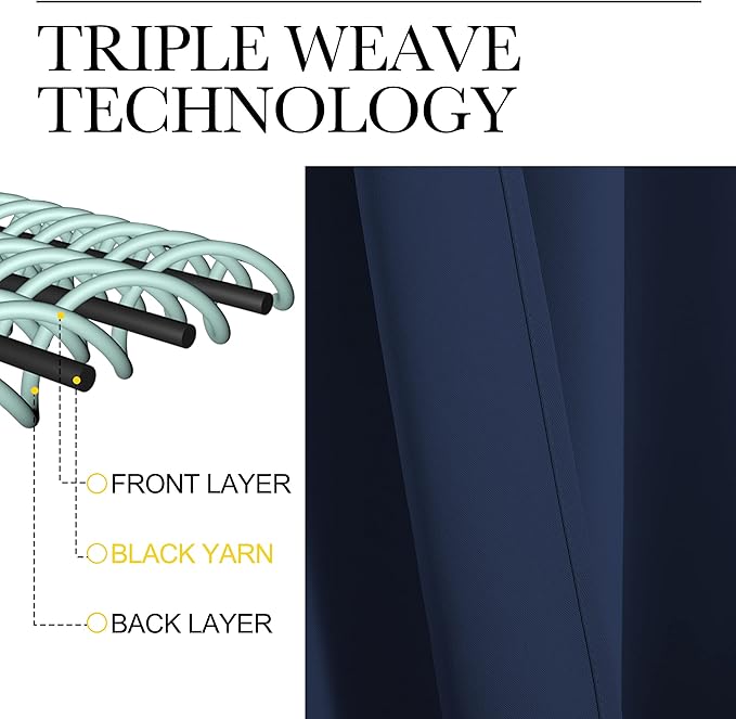 - Energy Smart: Triple weave blackout fabric balances room temperature by insulating against summer heat and winter chill. Protect your furniture, floors, and artwork from the ravages of the sun, the drapes will pay for themselves off over time.
