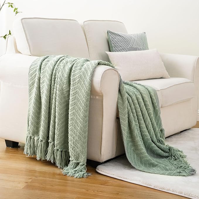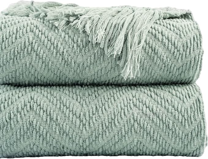 - STYLISH DESIGN & DECORATIVE: Our knit throw is woven from soft chenille yarn which has two different thicknesses to give it a special touch and a stylish boho look. Chic fringe tassels on both sides make this textured knitted blanket a perfect decoration for your couch, sofa, and bed, or use it as an ambiance piece to elevate your home decor with an artistic boho accent.