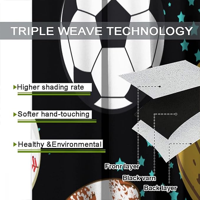 JESTRONRY Sport Window Curtains,Abstract Basketball Football Soccer Rugby Baseball Sports Theme Home Fabric Living Room Kids Boys Girls Teens Bedroom Home Decor Blackout Drapes W42xL45in