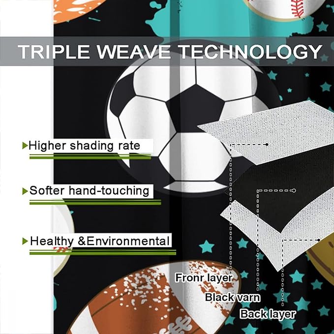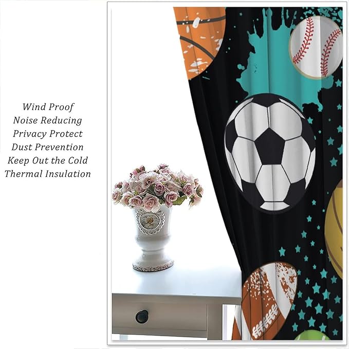 JESTRONRY Sport Window Curtains,Abstract Basketball Football Soccer Rugby Baseball Sports Theme Home Fabric Living Room Kids Boys Girls Teens Bedroom Home Decor Blackout Drapes W72xL63in