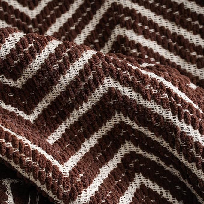 - STYLISH DESIGN & DECORATIVE: Our knit throw is woven from soft chenille yarn which has two different thicknesses to give it a special touch and a stylish boho look. Chic fringe tassels on both sides make this textured knitted blanket a perfect decoration for your couch, sofa, and bed, or use it as an ambiance piece to elevate your home decor with an artistic boho accent.