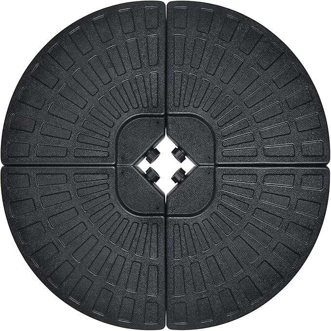 - 4 Piece Base Weight Set: Equipped with four-piece removable fan-shaped umbrella base weights plates, the cross base (not included) of your cantilever umbrella can be better stabilized. Besides, they could be easily stacked to save space when not in use.