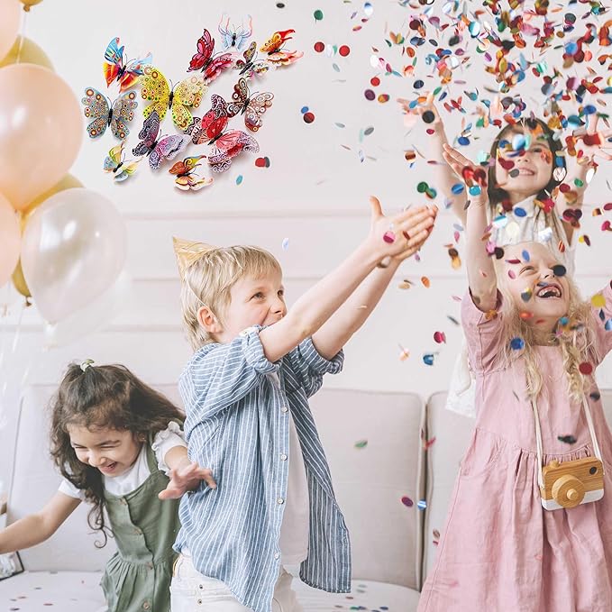 Butterfly Wall Decor 24/48 PCS, 3D Butterflies Stickers for Party Decorations with Magnets (Circl, 48)