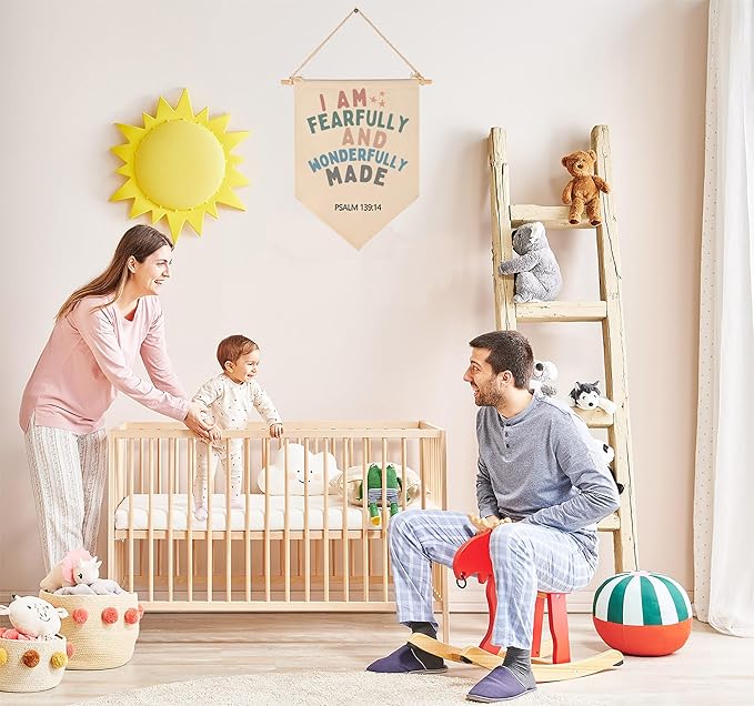 Christian Bible Verses Art-Scripture Flag Sign Gift for Baby Newborn Boys Girls Kids-Banner Wall Decor Gift for Nursery Bedroom Playroom Front Door-Baby Gift Shower-I Am Fearfully