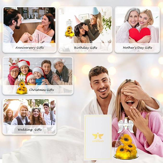 - Sunflower Gifts for Women,Forever Sunflowers in Glass - Angel statue made of clear glass,Sunflower bouquet never fades, and never withers. Perfect keep on a angel figurines for women,The flower language of the eternal flower is "love that never withers",Sunflower Gifts for Women,Artificial Sunflower Gifts for Mom Wife Girlfriend Wife Her