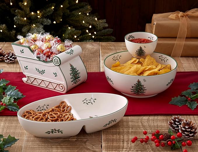 - Beloved Holiday Design: The Spode Christmas Tree Large Divided Server features the classic Christmas Tree motif, adding a nostalgic and festive touch to your holiday tableware and enhancing your seasonal table decor.