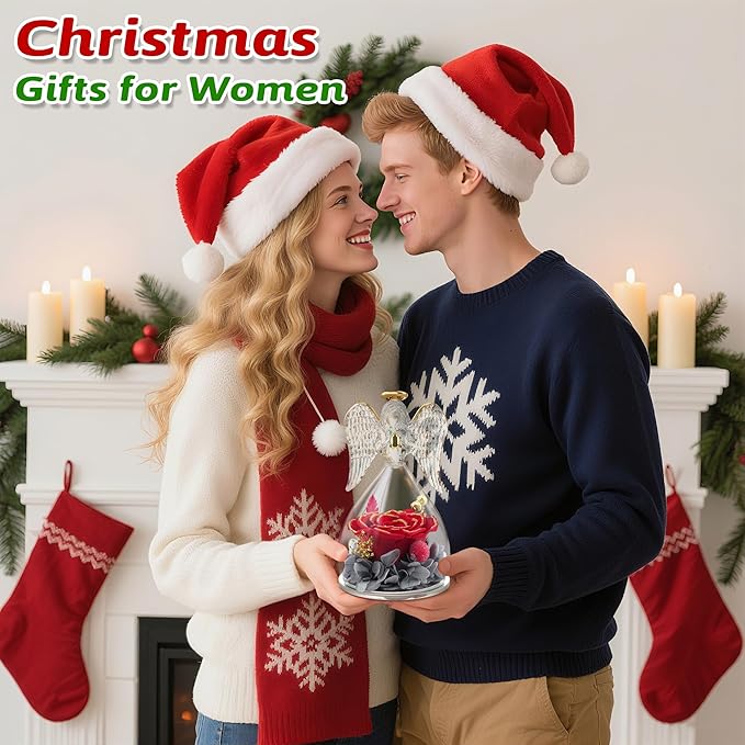 Yamonic Mom Birthday Gifts for Moms, Angel Figurines with Real Rose Gifts for Her Mother Grandma, Preserved Flowers Rose Angel Figurines for Mothers Day Christmas Birthday Gifts for Women(Redgold)