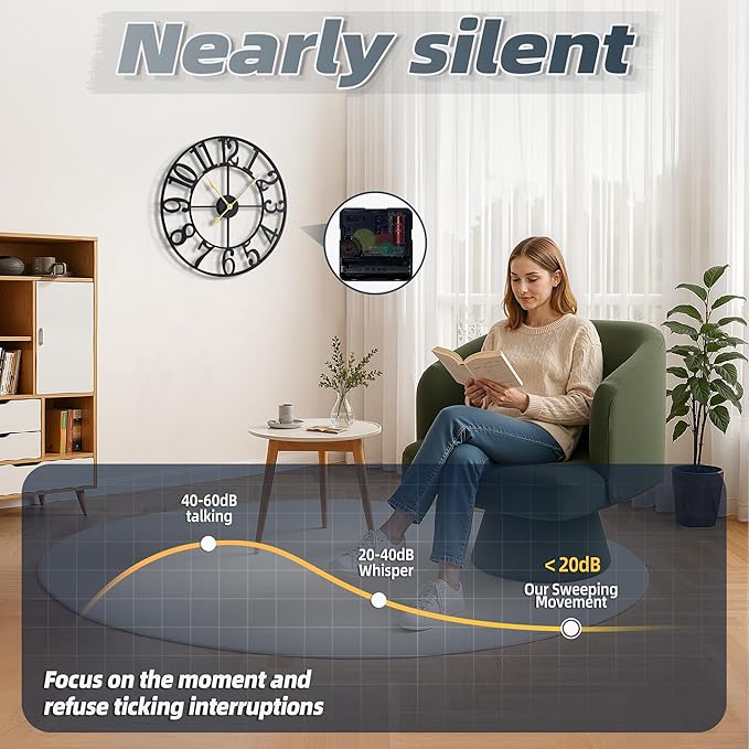 - [Stay Away From The Noise] - Its timeless design and modern finish seamlessly blend old and new. The near-silent mechanism ensures a peaceful environment, and the arabic numerals add a touch of elegance. This wall clock modern not only keeps you on time but also enhances the aesthetics of your living space.