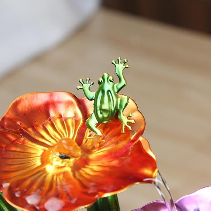 - INDOOR 3-TIER TABLETOP FOUNTAIN: Features a multi-tier metal flower pedals design and stone-filled base with an interior pump that keeps the water flowing - just plug it in!