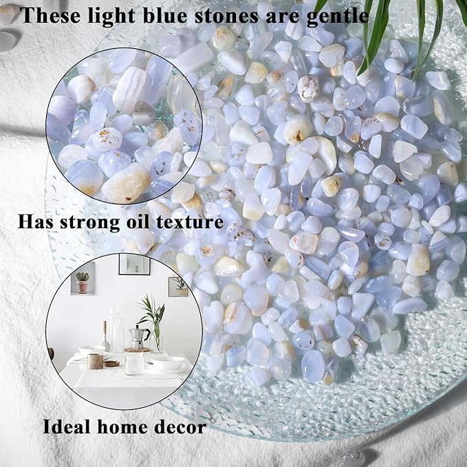 - 【Good Selection of Natural Material】 Carefully selected natural light blue stones with a gentle texture, rich color, and smooth surface. Each stone is crafted into unique, irregular shapes using fine processing techniques. Size: about 0.35"–0.5"; weight: 1LB.