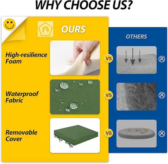 - Non-slip Ties & Anti-Slip Bottom: Easy-to-use ties and a non-slip bottom keep your outdoor cushion firmly in place, so you can sit comfortably without slipping, relax with confidence, and enjoy your outdoor space safely and stress-free