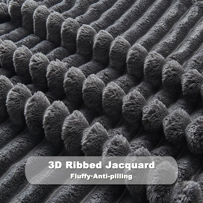 NEWCOSPLAY Super Soft Throw Blanket Grey Premium Silky Flannel Fleece 3D Ribbed Jacquard Lightweight Bed Blanket All Season Use (Grey Ribbed, Throw(50"x60"))
